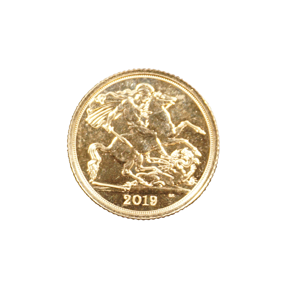 Moeda de ouro original do Reino Unido datada do ano de 2019.
