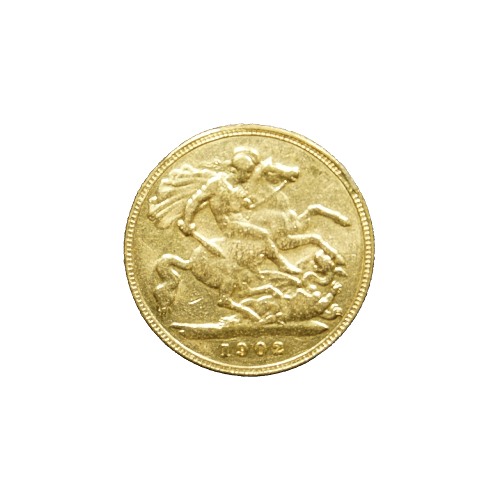 Moeda de ouro de origem inglesa datada de 1902.