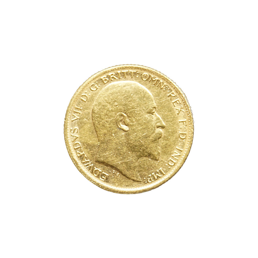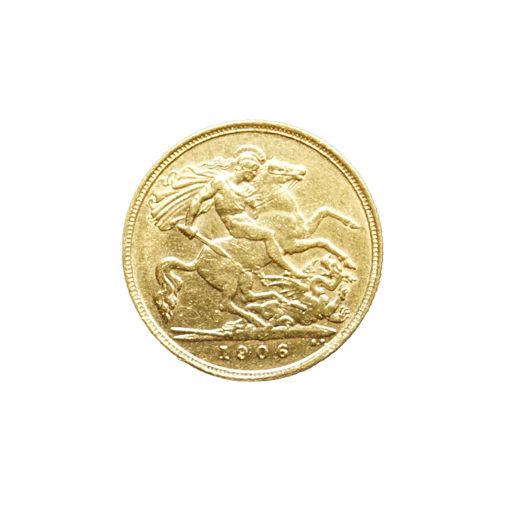Moeda de ouro de origem inglesa datada de 1906.