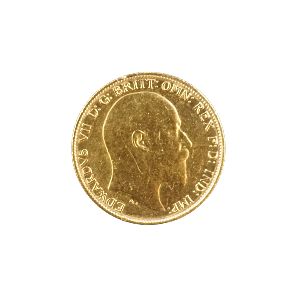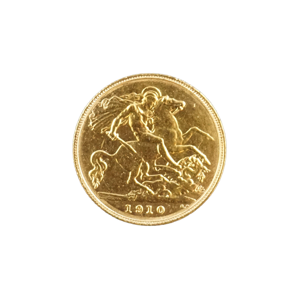 Moeda de ouro original do Reino Unido datada do ano de 1910.