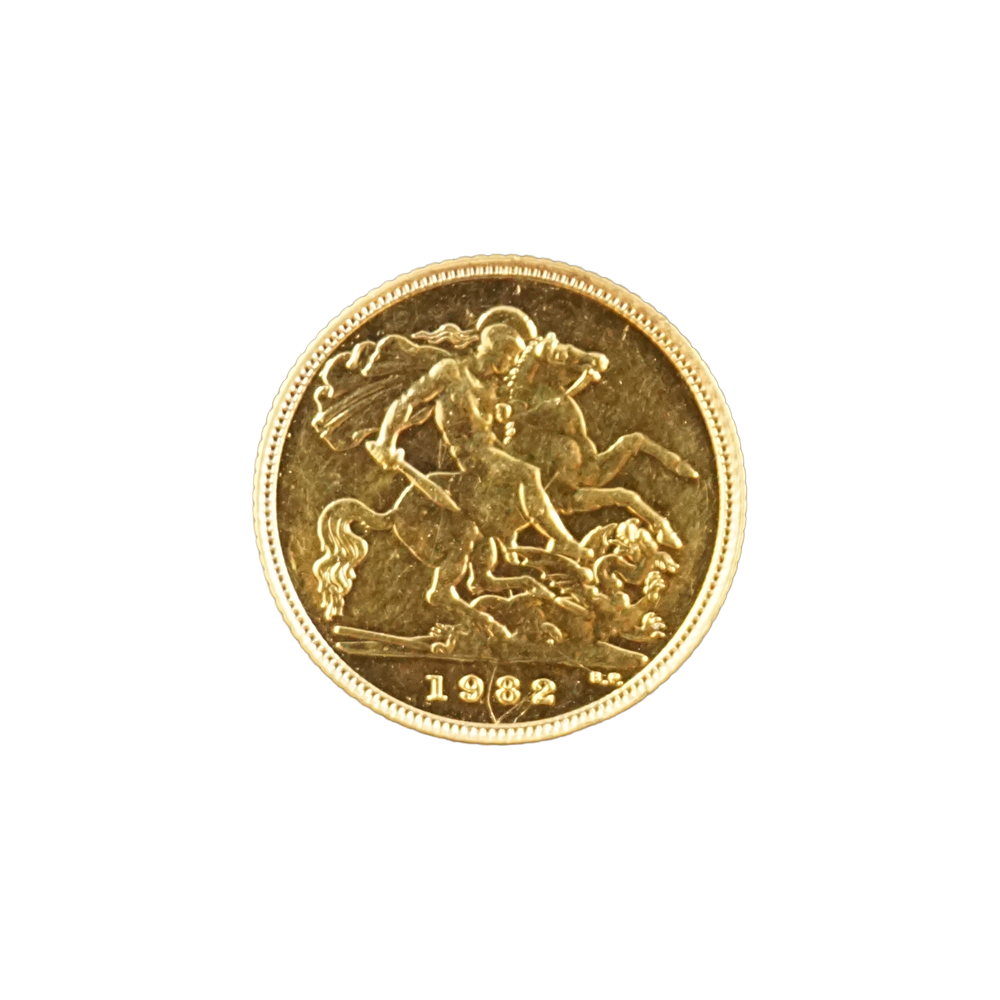 Moeda de ouro original do Reino Unido datada do ano de 1982.