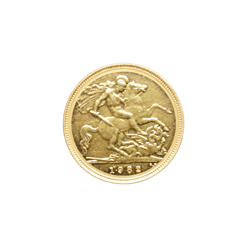Moeda de ouro original do Reino Unido datada do ano de 1982.