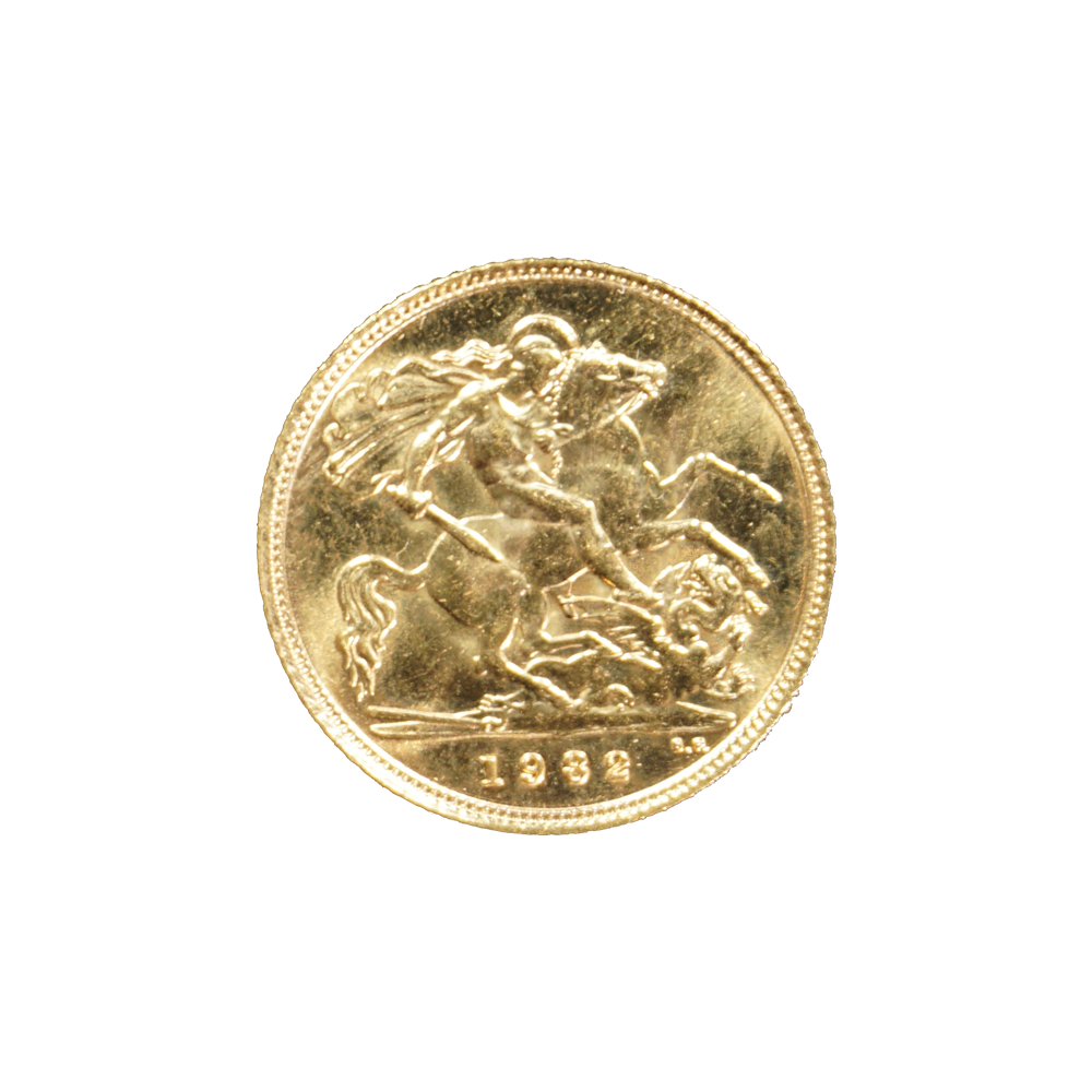 Moeda de ouro original do Reino Unido datada do ano de 1982.