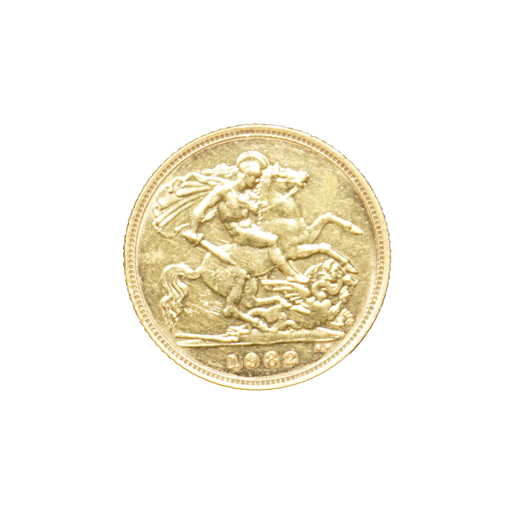Moeda de ouro original do Reino Unido datada do ano de 1982.