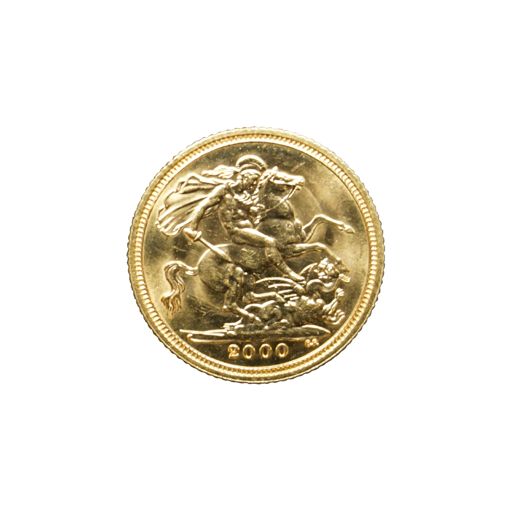 Moeda de ouro original do Reino Unido datada do ano de 2000.