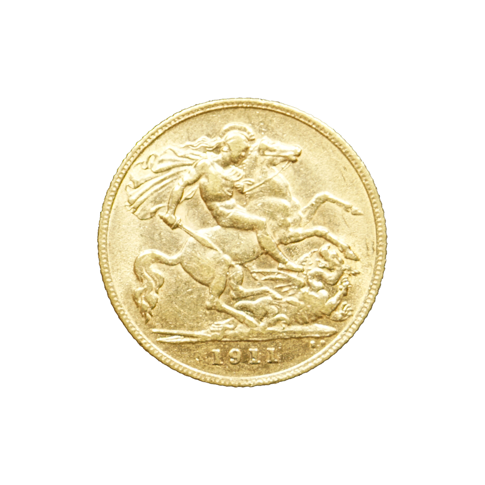 Moeda de ouro original do Reino Unido datada do ano de 1911.