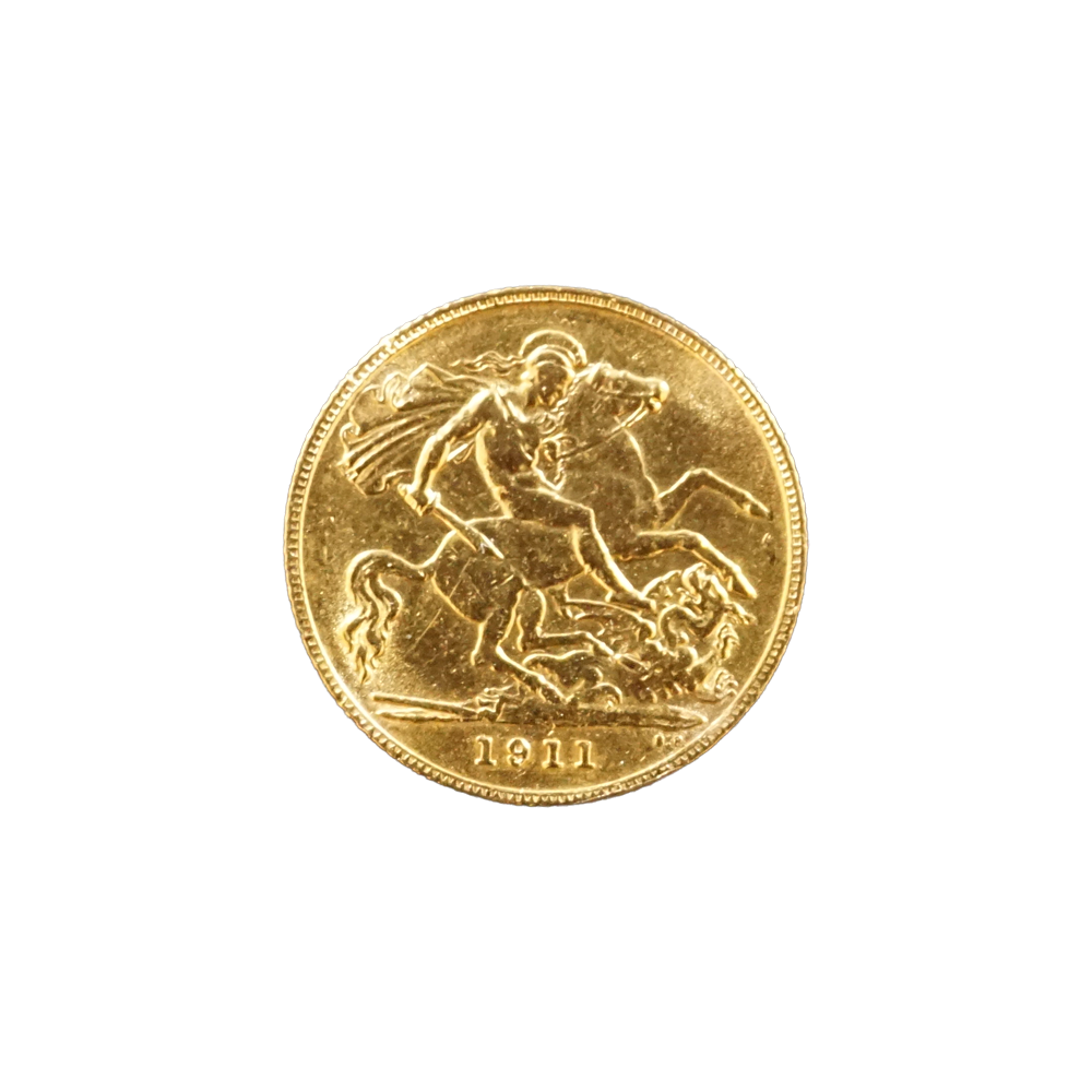 Moeda de ouro original do Reino Unido datada do ano de 1911.