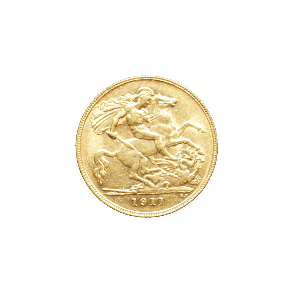 Moeda de ouro original do Reino Unido datada do ano de 1911.