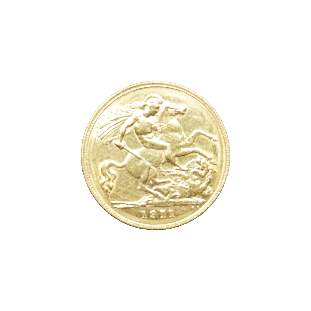 Moeda de ouro original do Reino Unido datada do ano de 1911.
