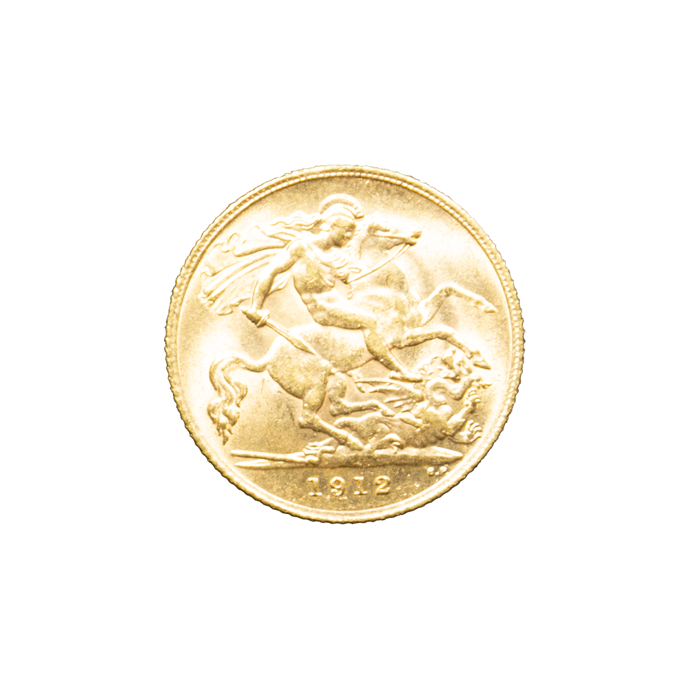 Moeda de ouro original do Reino Unido datada do ano de 1912.