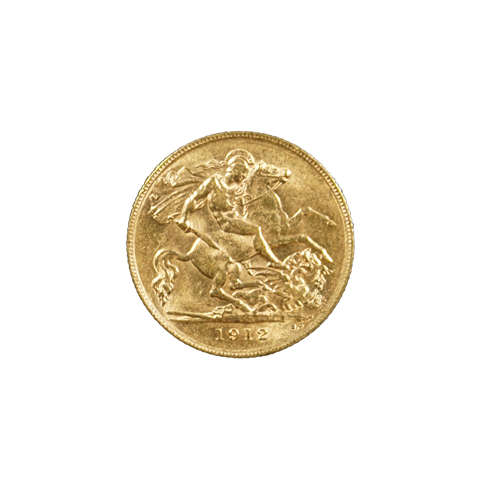 Moeda de ouro original do Reino Unido datada do ano de 1912.