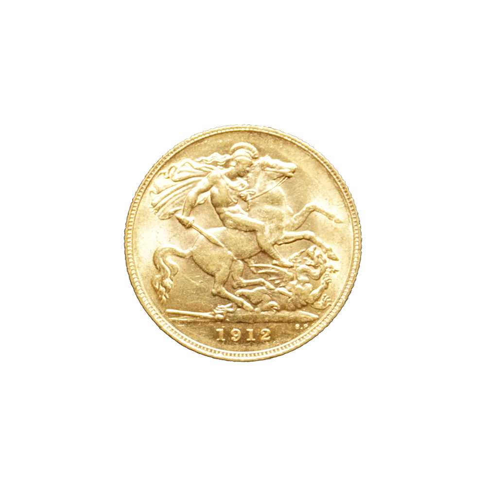 Moeda de ouro original do Reino Unido datada do ano de 1912.