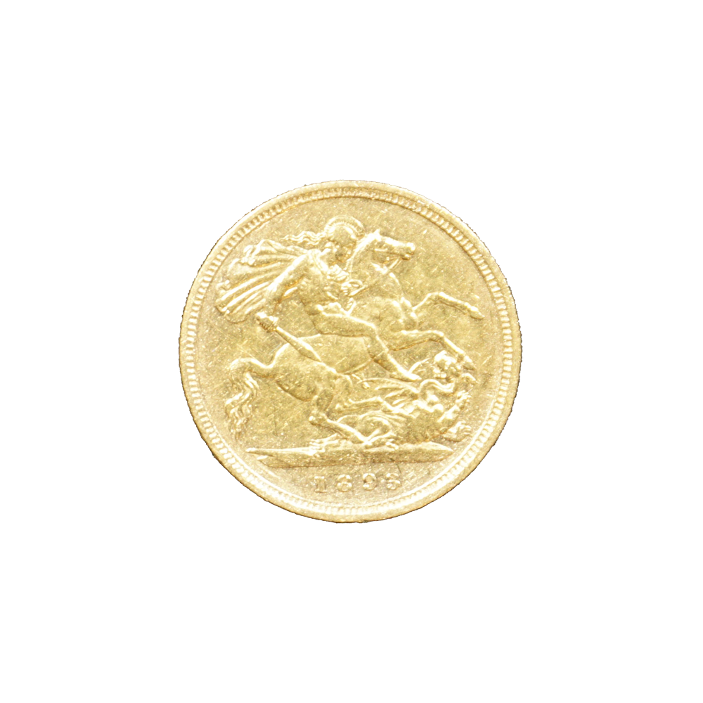 Moeda de ouro original do Reino Unido datada do ano de 1893.