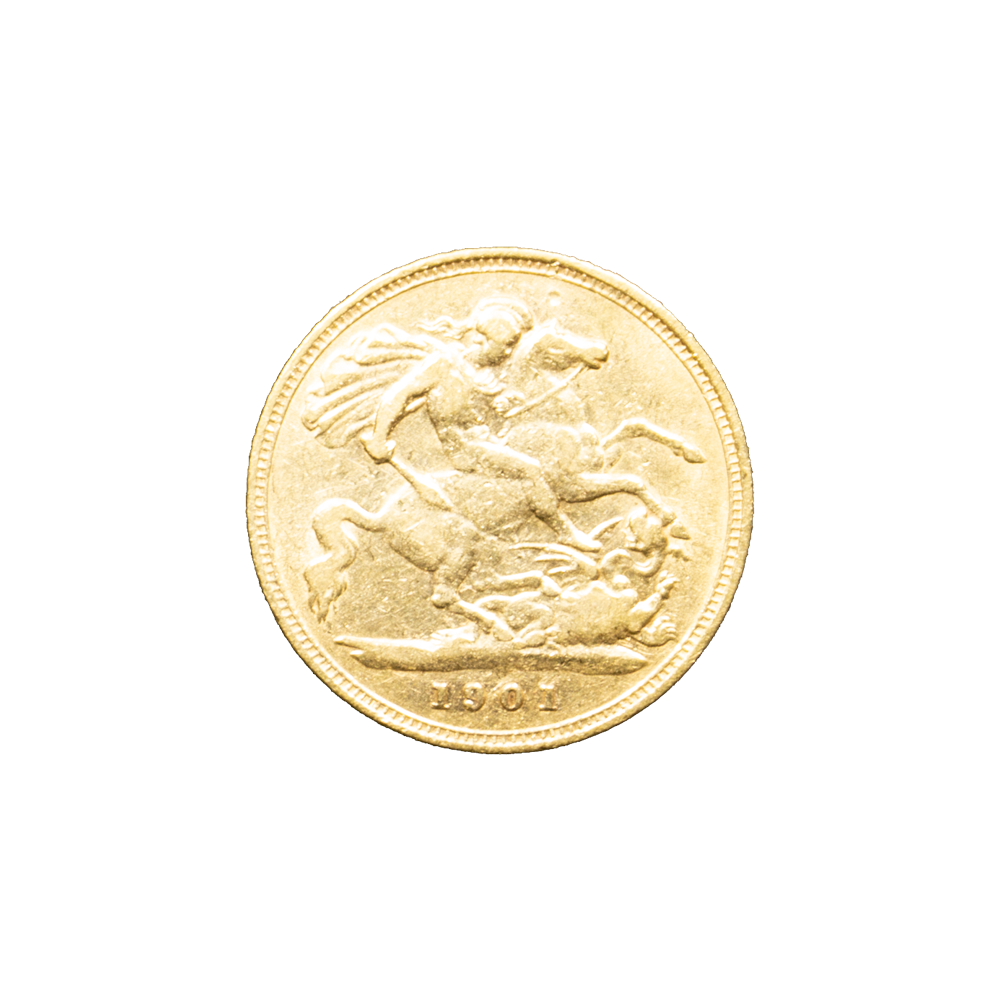 Moeda de ouro original do Reino Unido datada do ano de 1901.