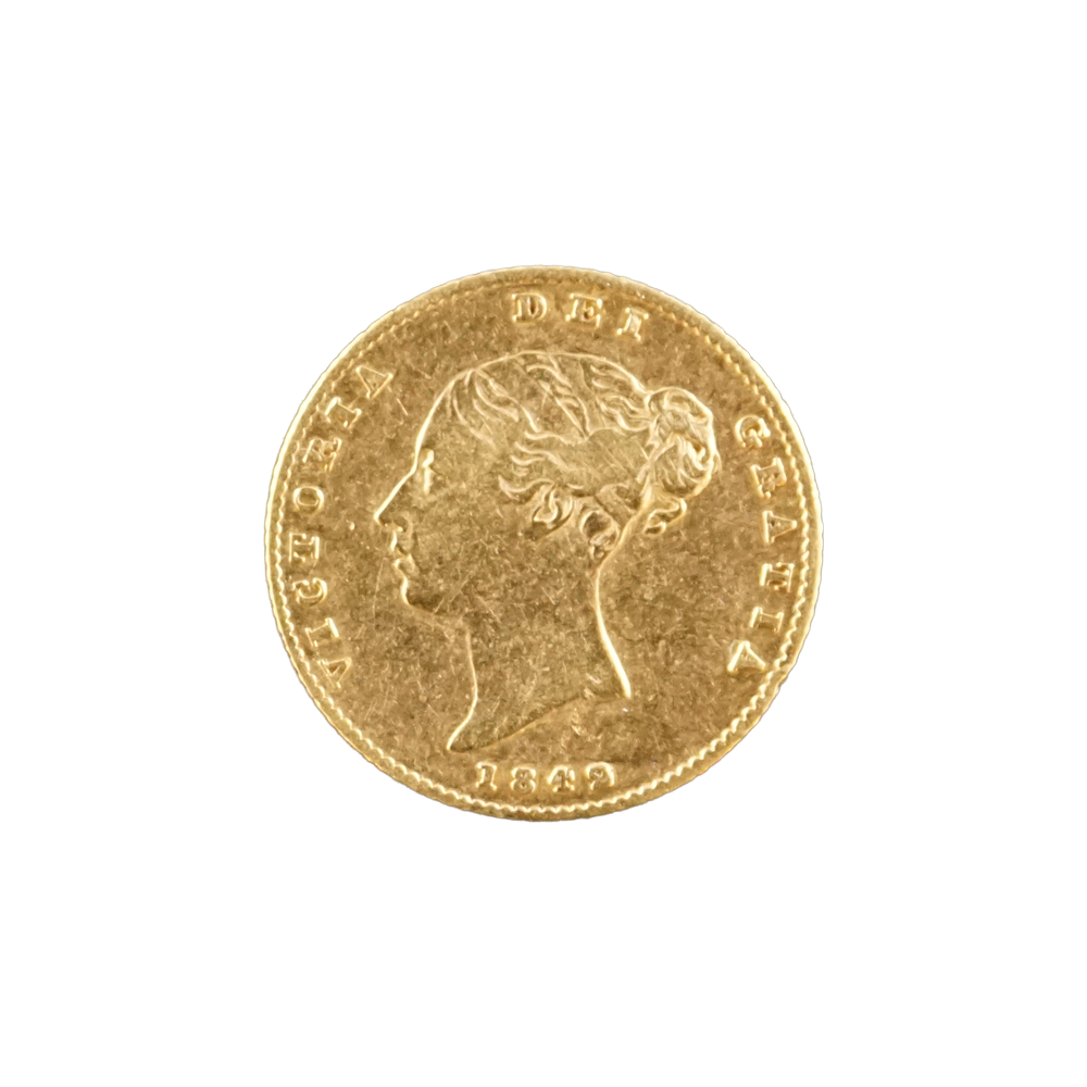 Moeda de ouro original do Reino Unido datada do ano de 1842.
