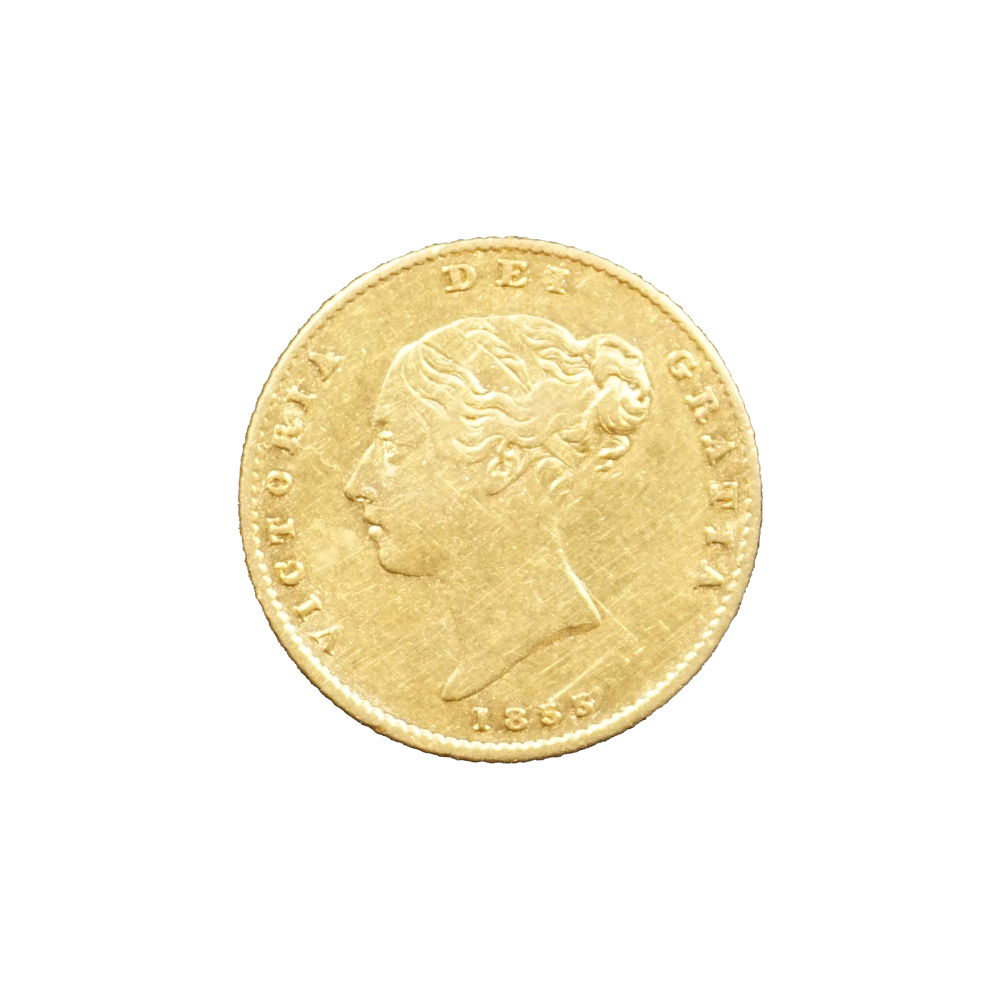 Moeda de ouro original do Reino Unido datada do ano de 1855.