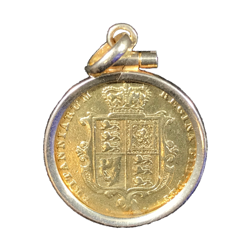 Moeda de ouro original do Reino Unido datada do ano de 1859.