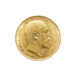 Moeda de ouro original do Reino Unido datada do ano de 1908.