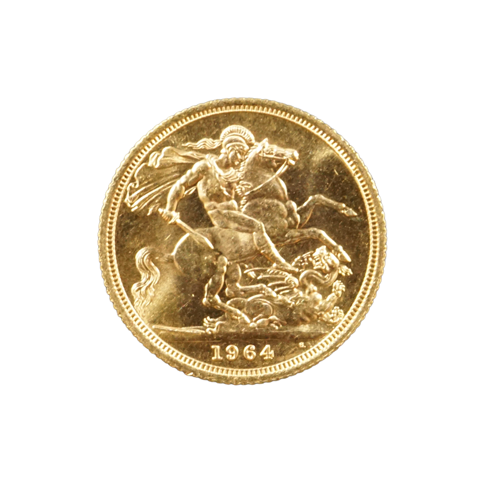Moeda de ouro original do Reino Unido datada do ano de 1964.