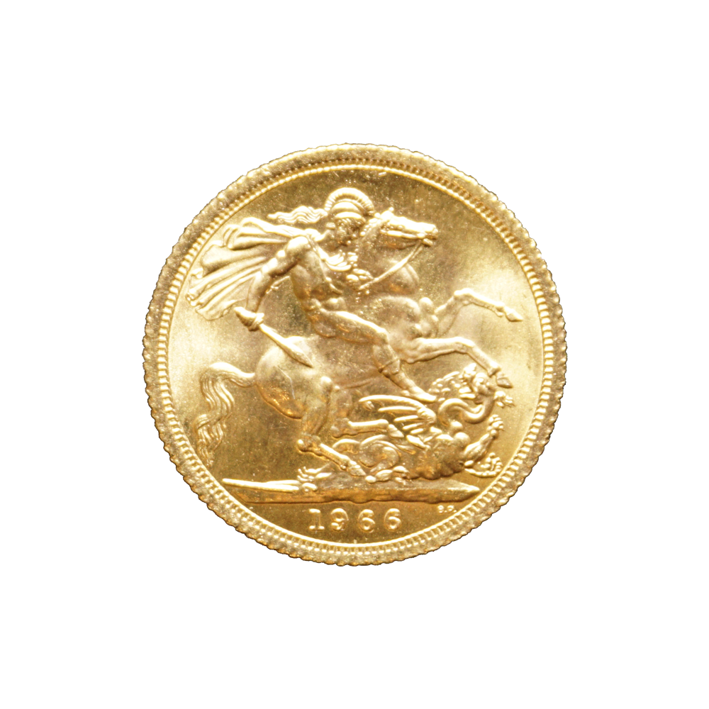 Moeda de ouro original do Reino Unido datada do ano de 1966.