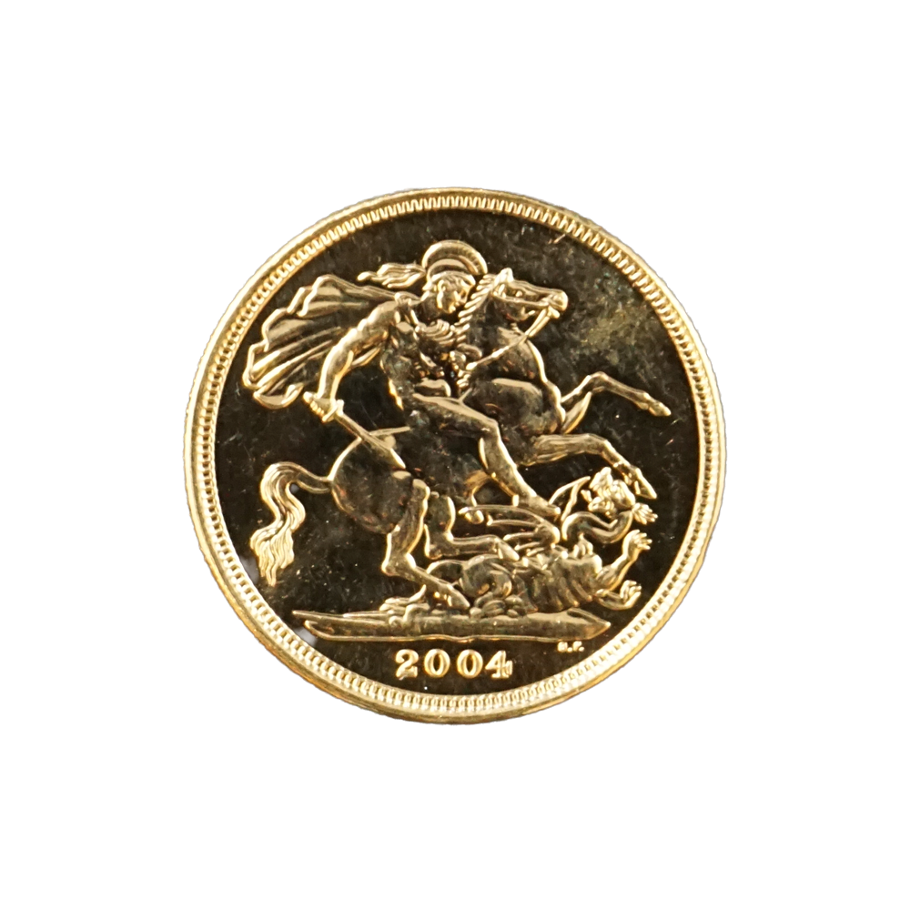Moeda de ouro original do Reino Unido datada do ano de 2004.