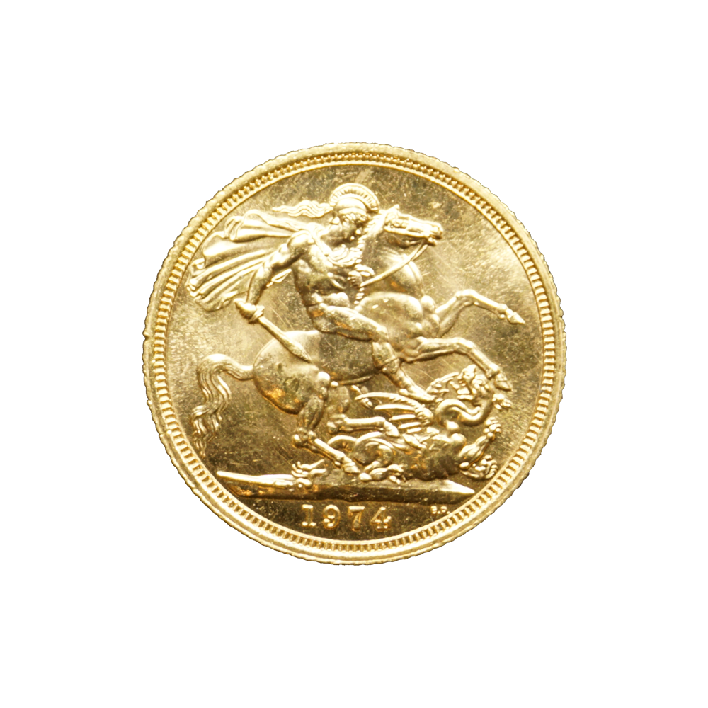 Moeda de ouro original do Reino Unido datada do ano de 1974.