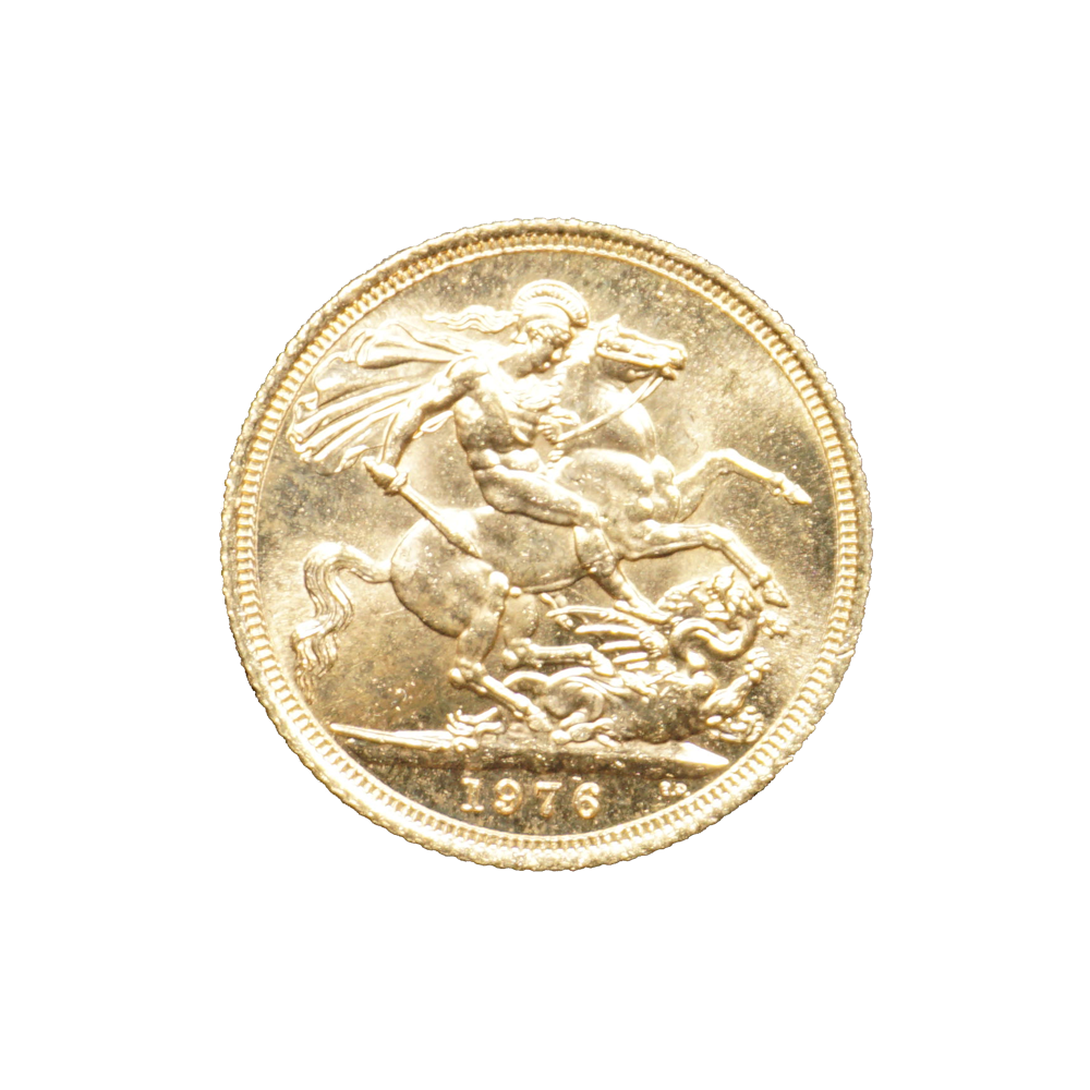 Moeda de ouro original do Reino Unido datada do ano de 1976.