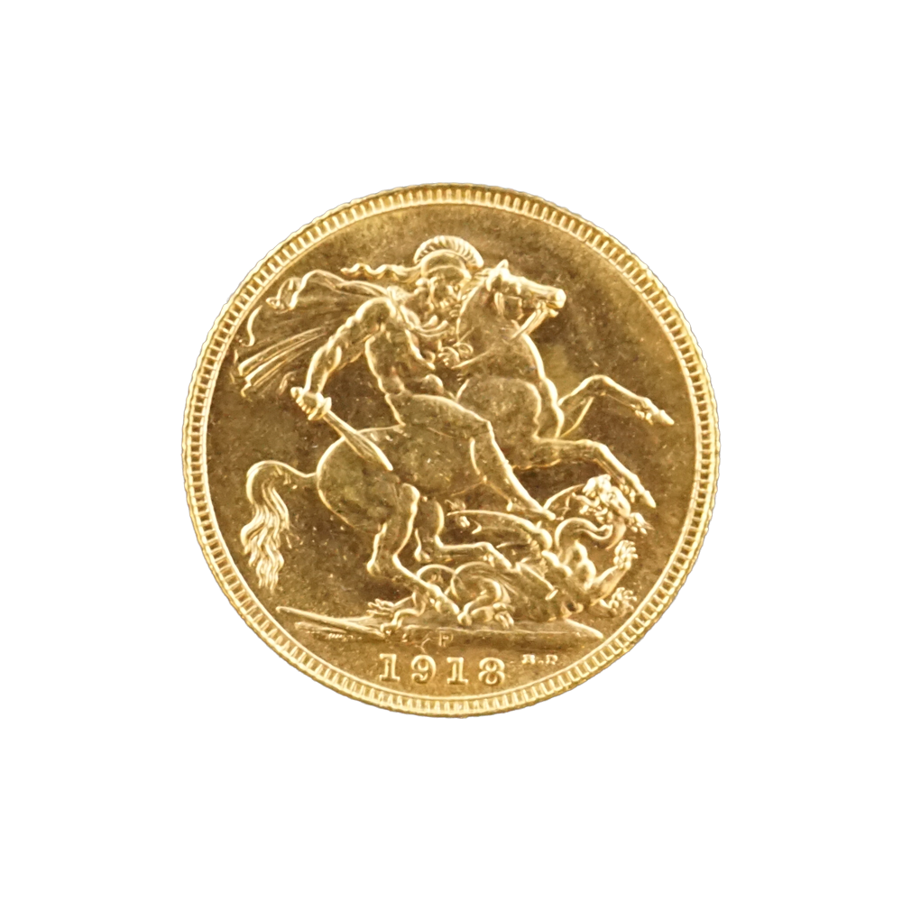 Moeda de ouro original do Reino Unido datada do ano de 1918.