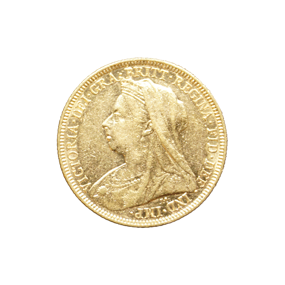 Moeda de ouro original do Reino Unido datada do ano de 1895.
