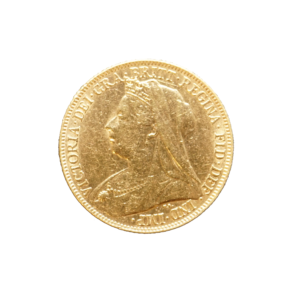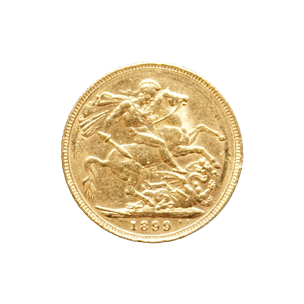 Moeda de ouro original do Reino Unido datada do ano de 1899.