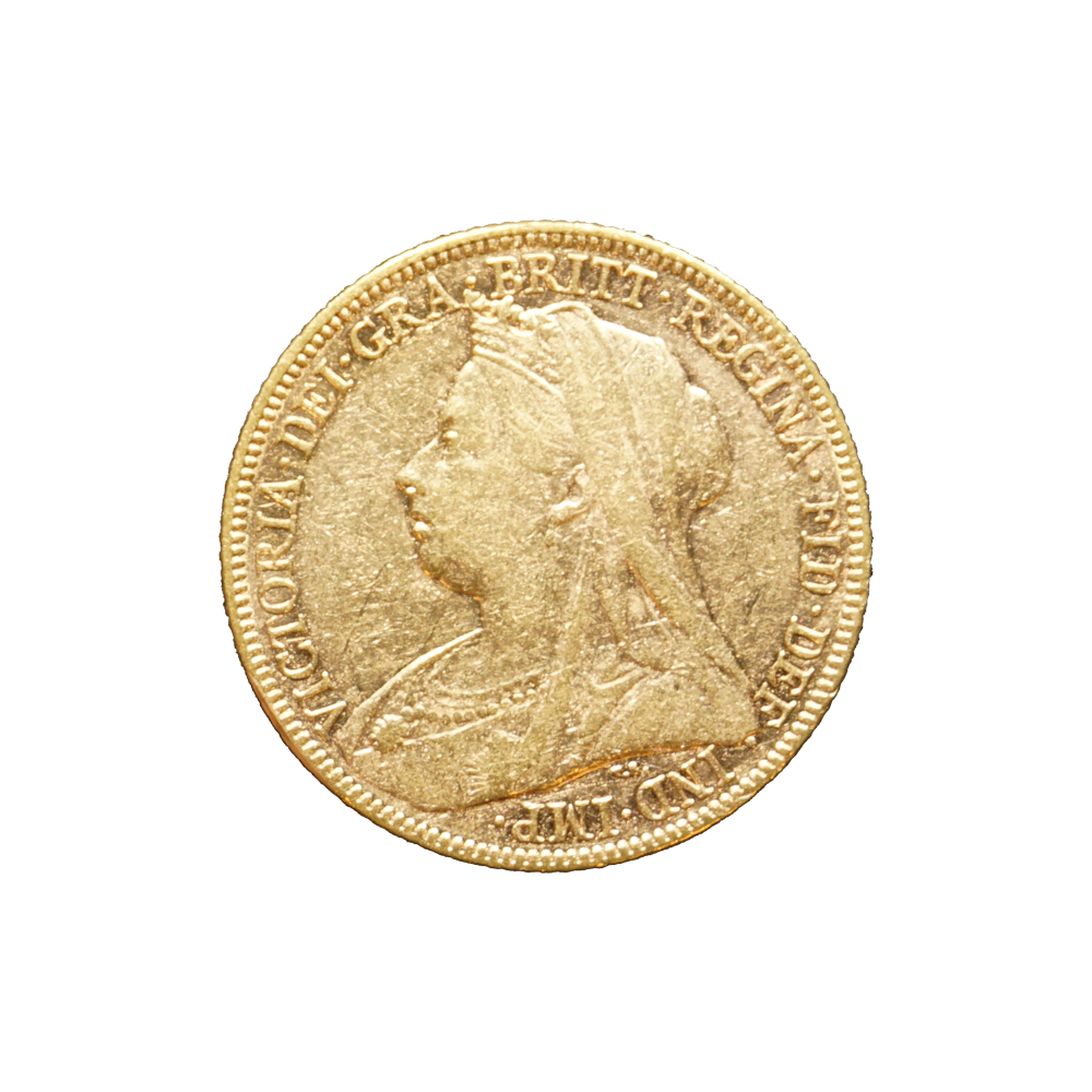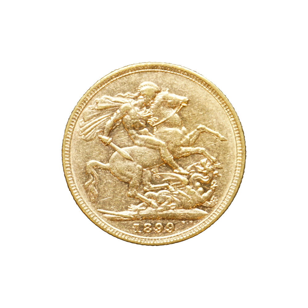 Moeda de ouro original do Reino Unido datada do ano de 1899.