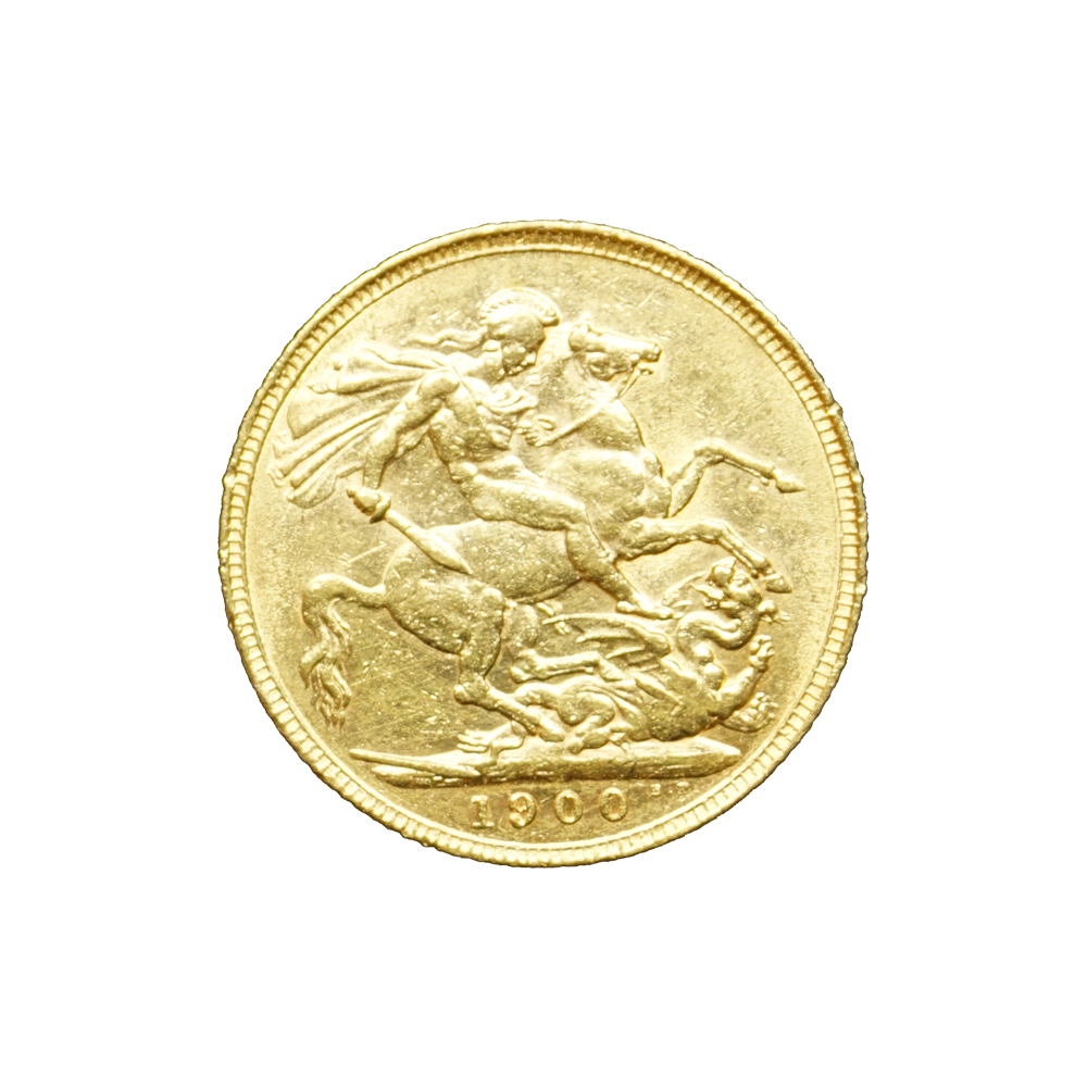 Moeda de ouro original do Reino Unido datada do ano de 1900.