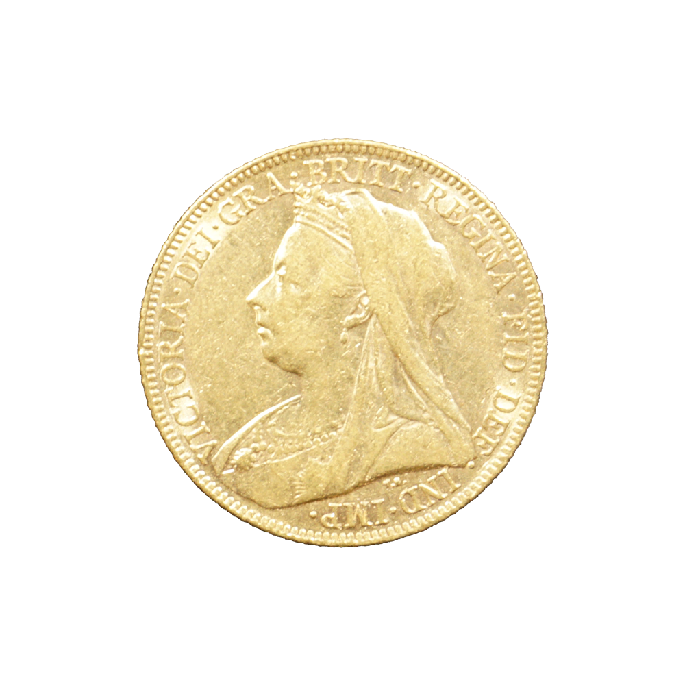 Moeda de ouro original do Reino Unido datada do ano de 1900.