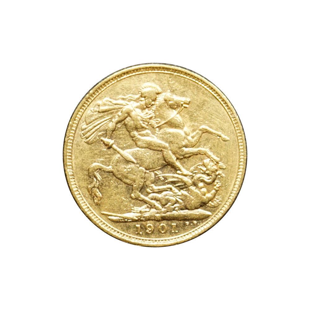 Moeda de ouro original do Reino Unido datada do ano de 1901.