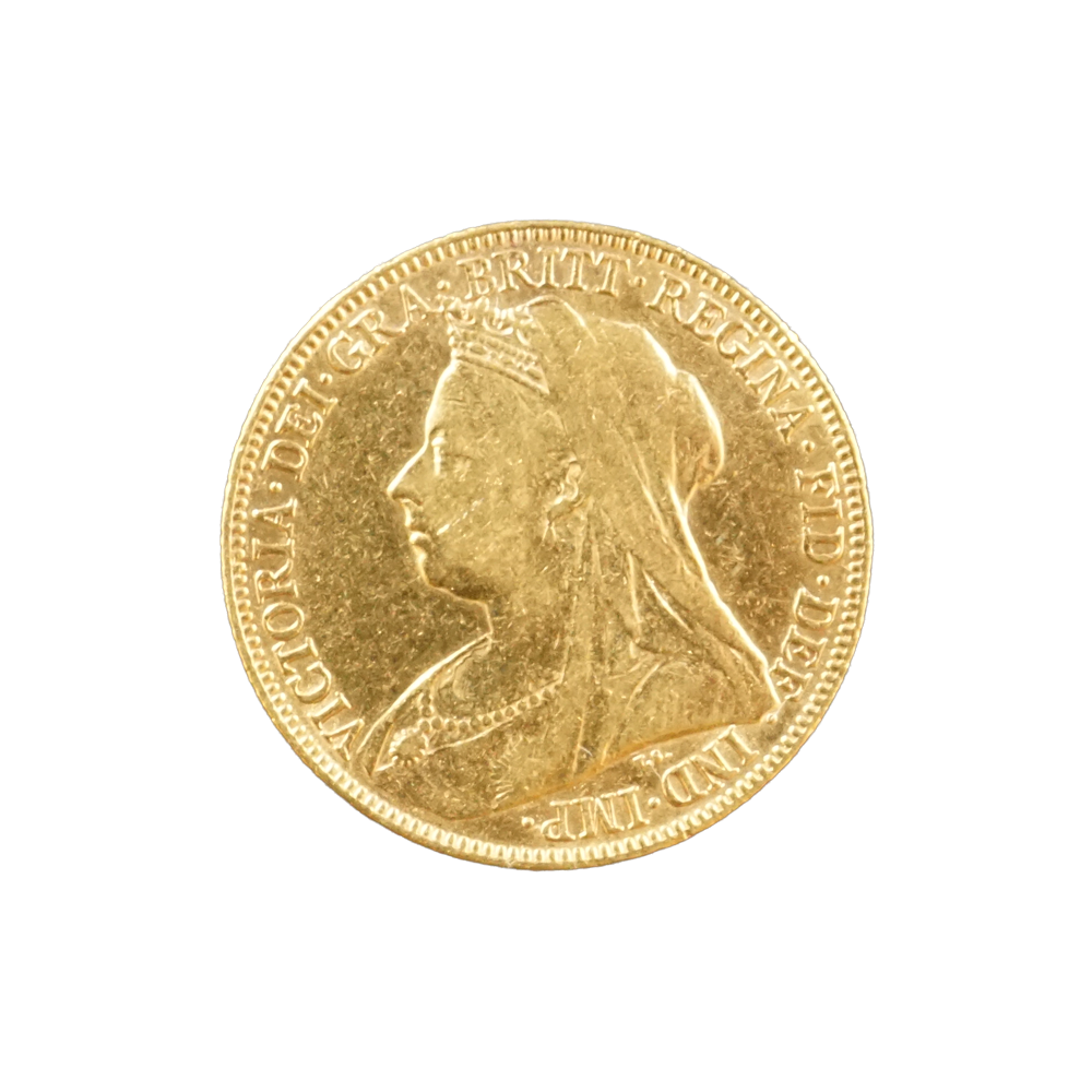 Moeda de ouro original do Reino Unido datada do ano de 1898.