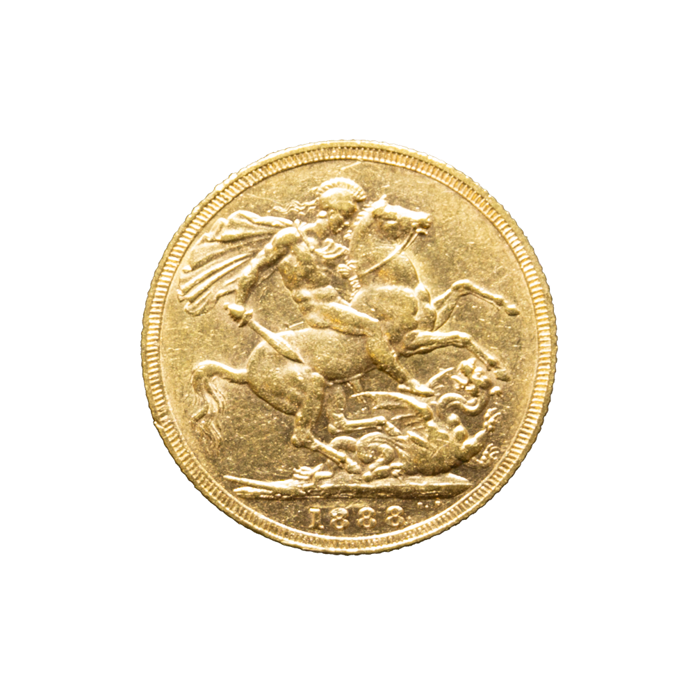 Moeda de ouro original do Reino Unido datada do ano de 1888.