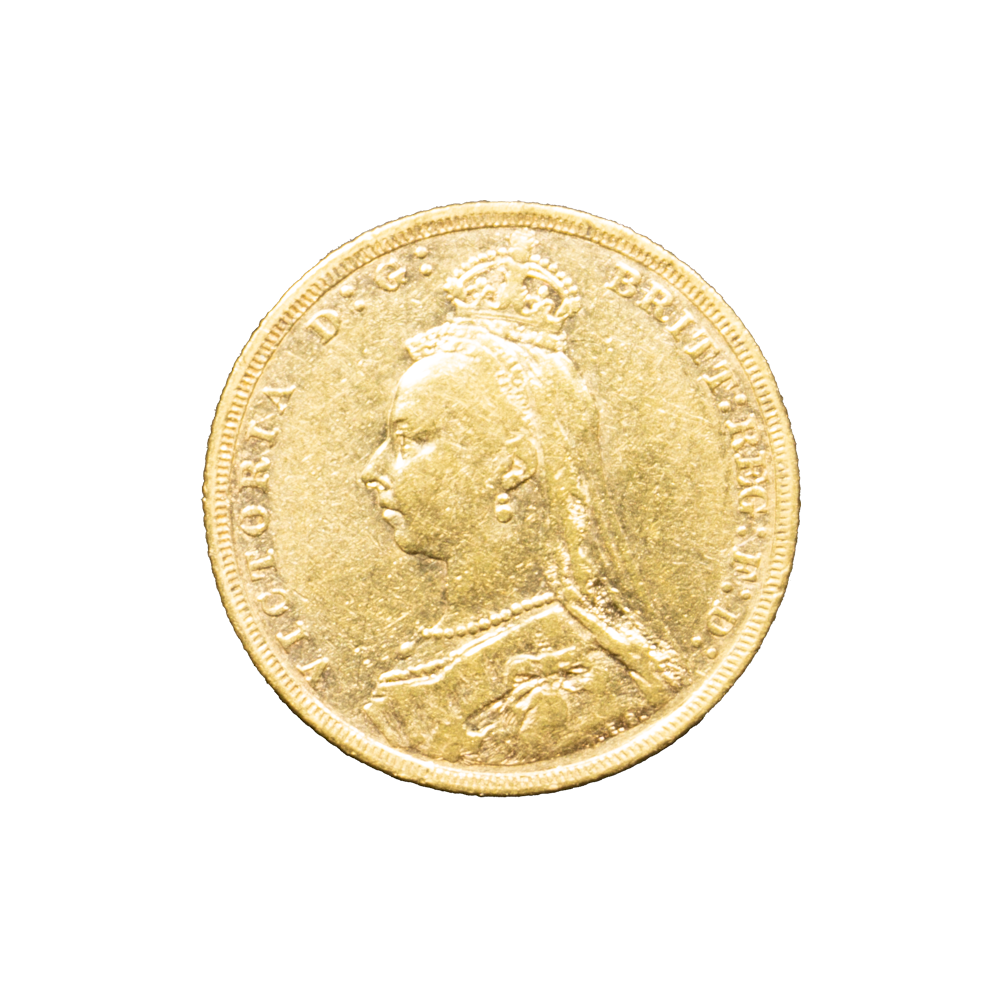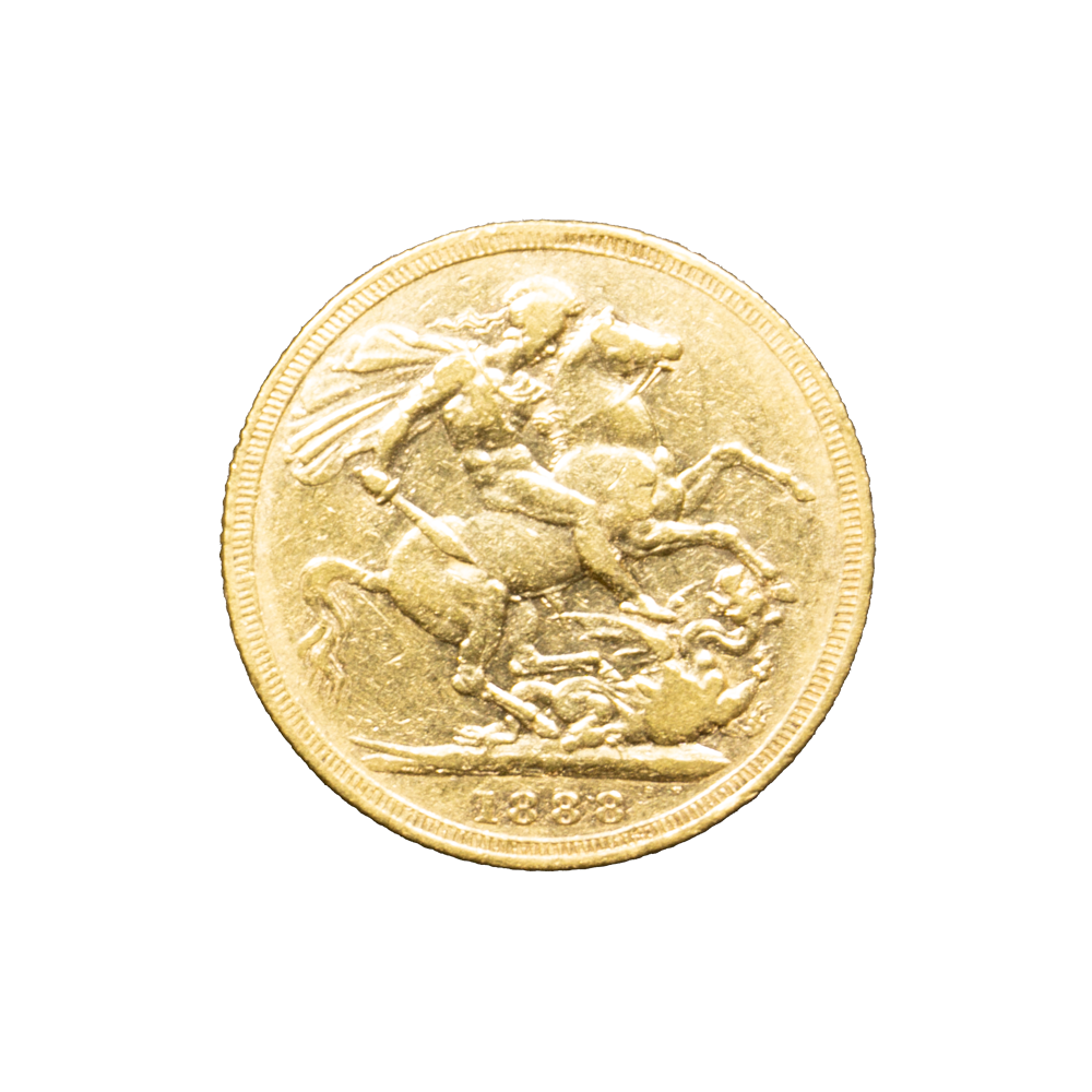 Moeda de ouro original do Reino Unido datada do ano de 1888.