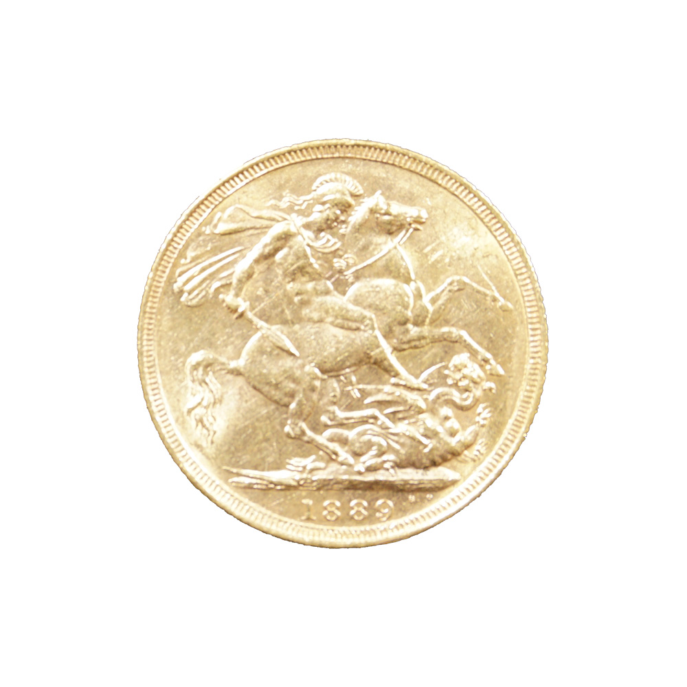 Moeda de ouro original do Reino Unido datada do ano de 1889.