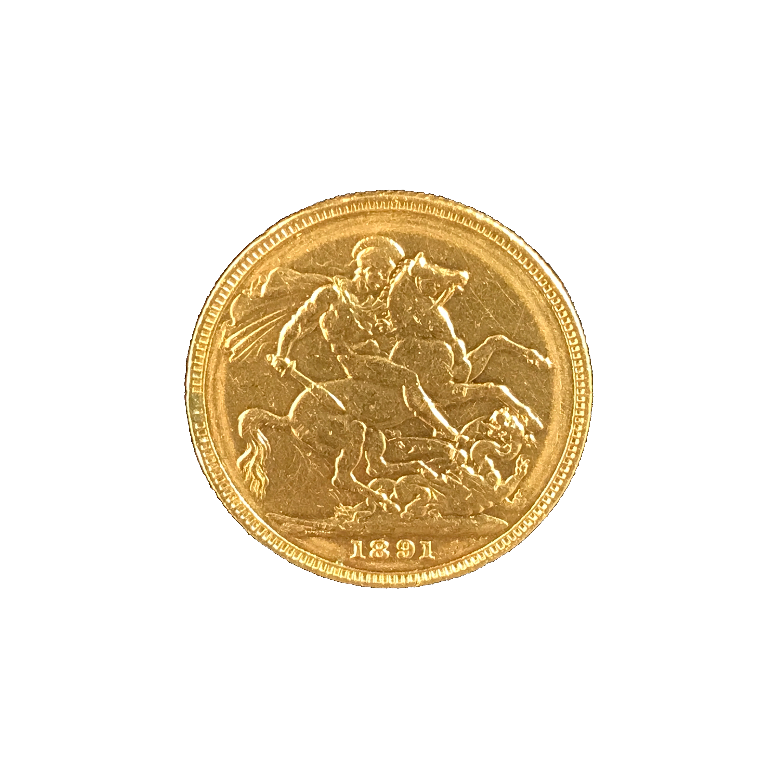 Moeda de ouro original do Reino Unido datada do ano de 1891.