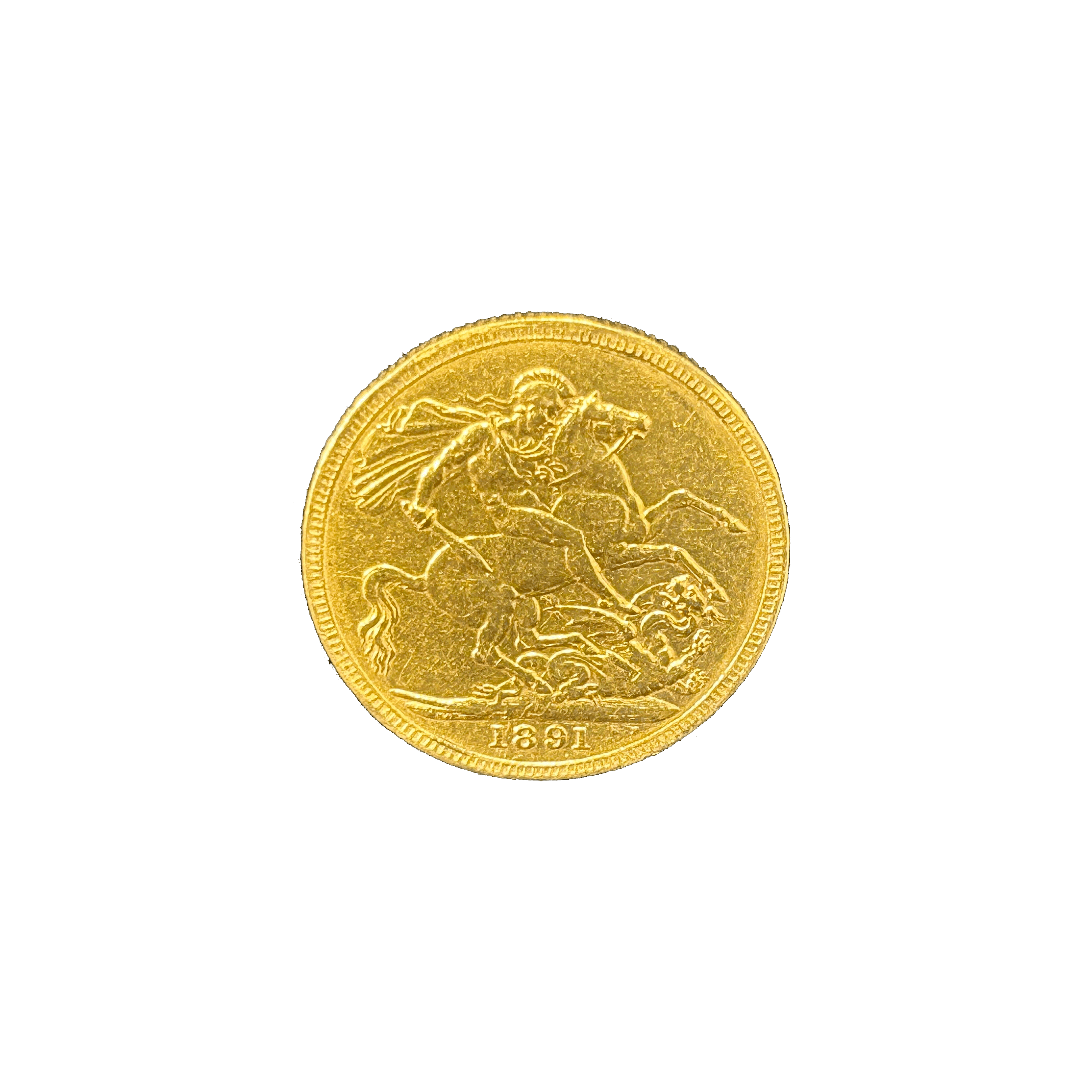 Moeda de ouro original do Reino Unido datada do ano de 1891.