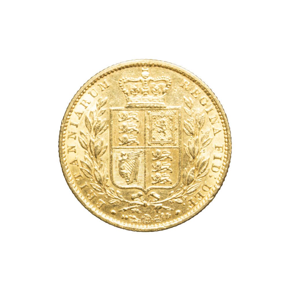 Moeda de ouro original do Reino Unido datada do ano de 1855.