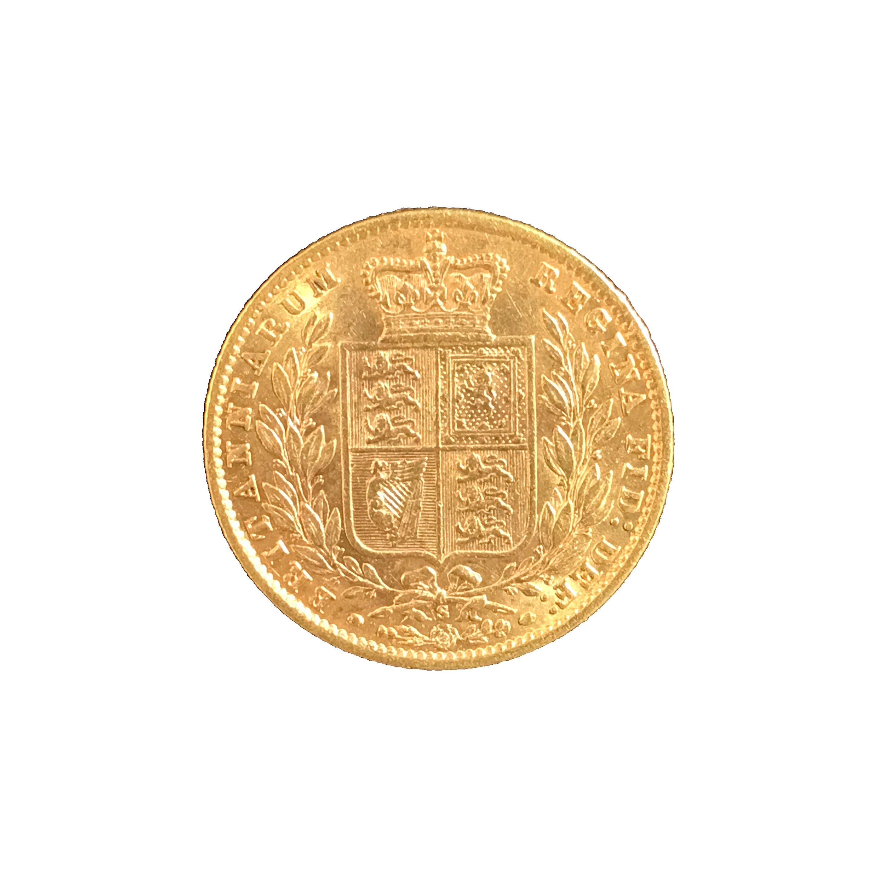 Moeda de ouro original do Reino Unido datada do ano de 1871.