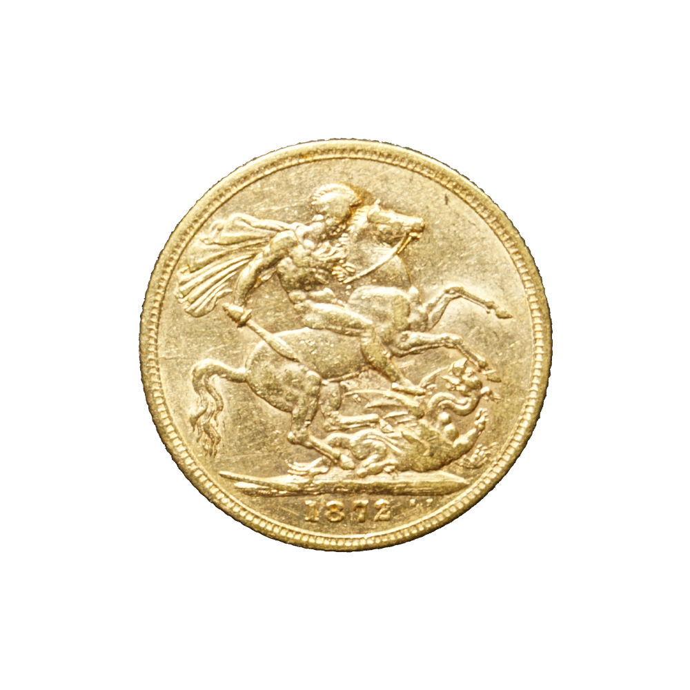 Moeda de ouro original do Reino Unido datada do ano de 1872.