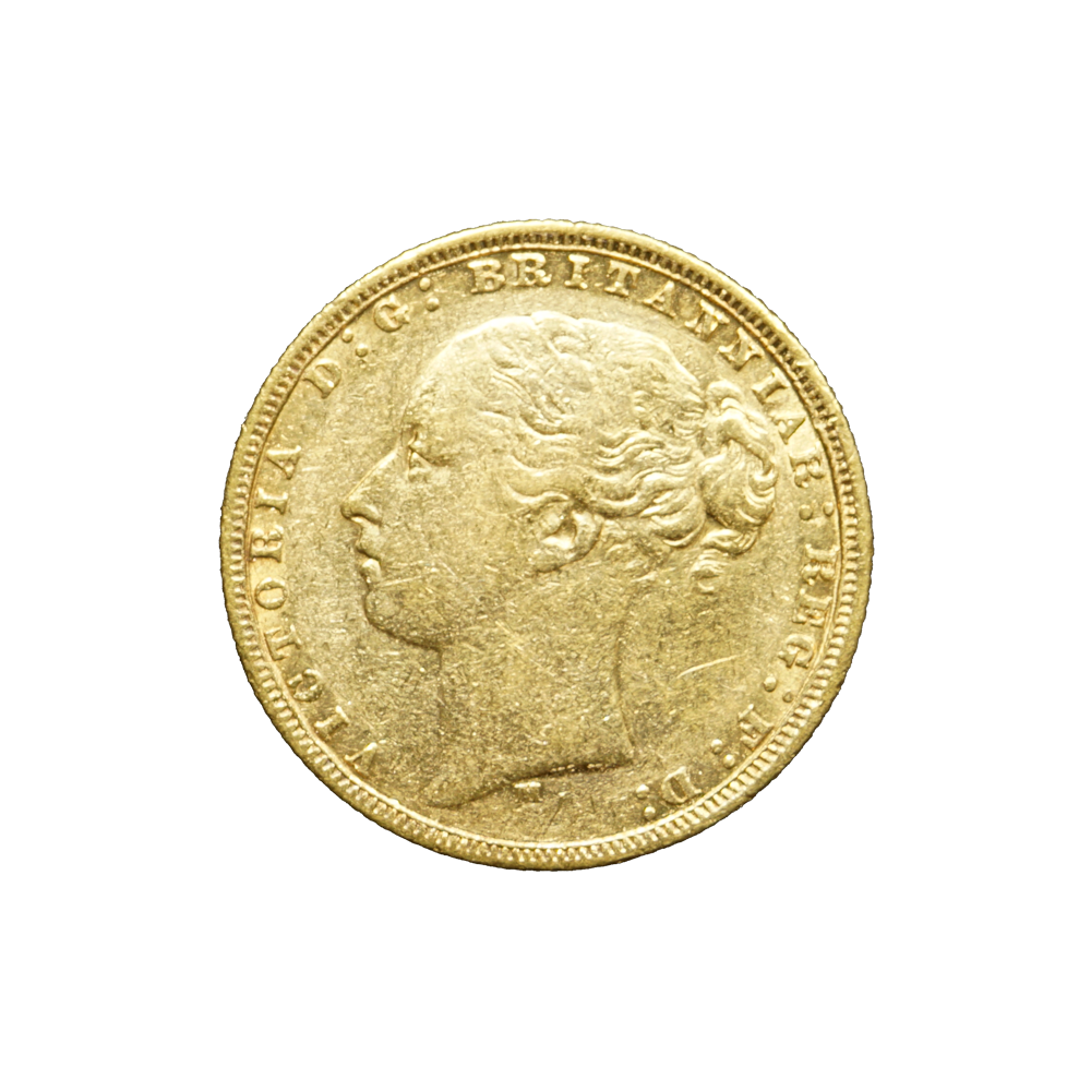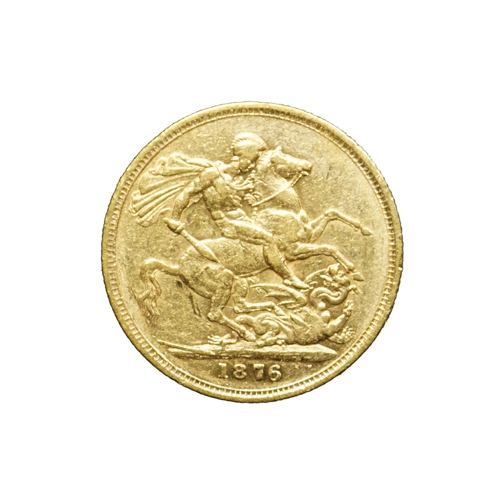 Moeda de ouro original do Reino Unido datada do ano de 1876.