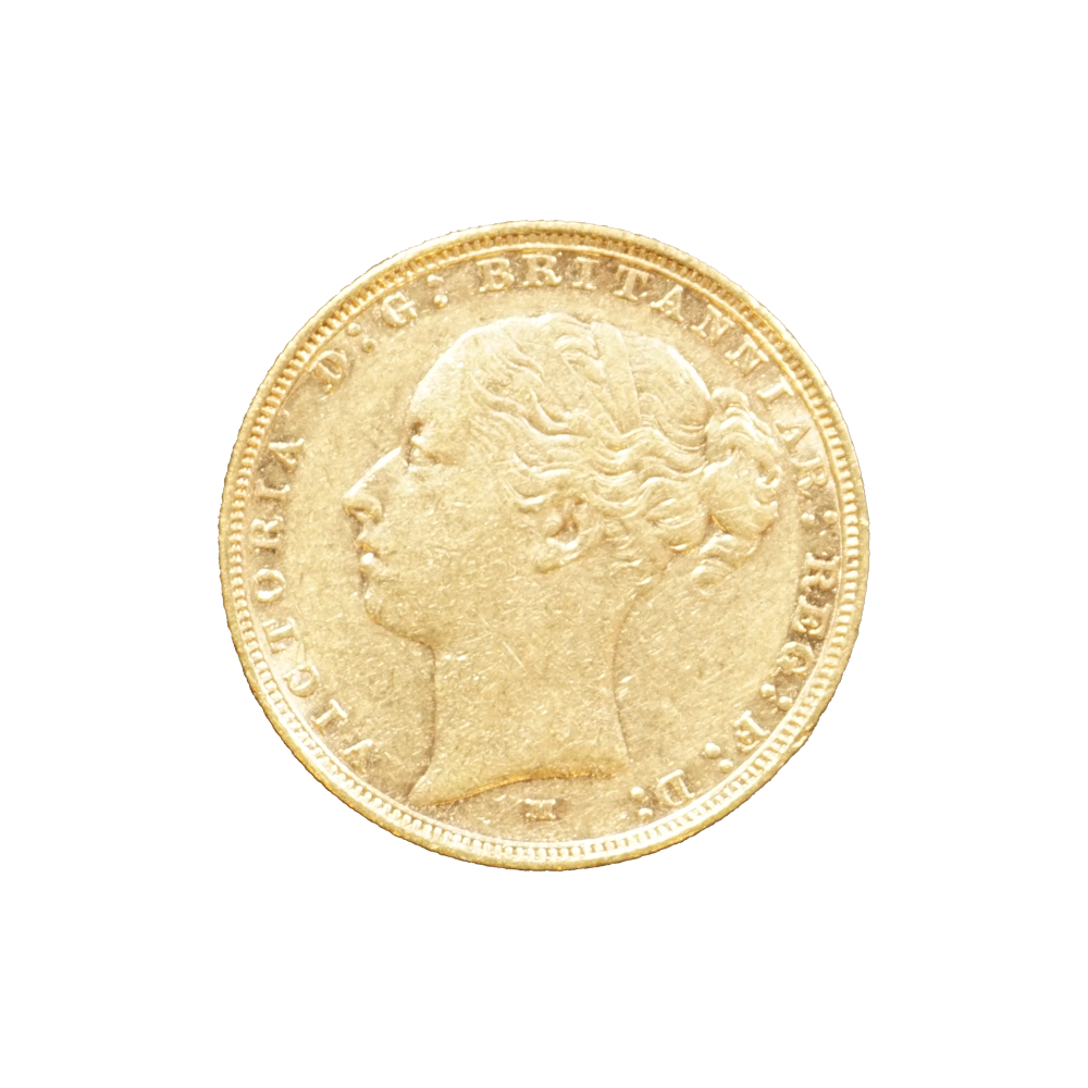 Moeda de ouro original do Reino Unido datada do ano de 1884.
