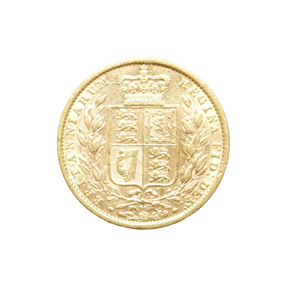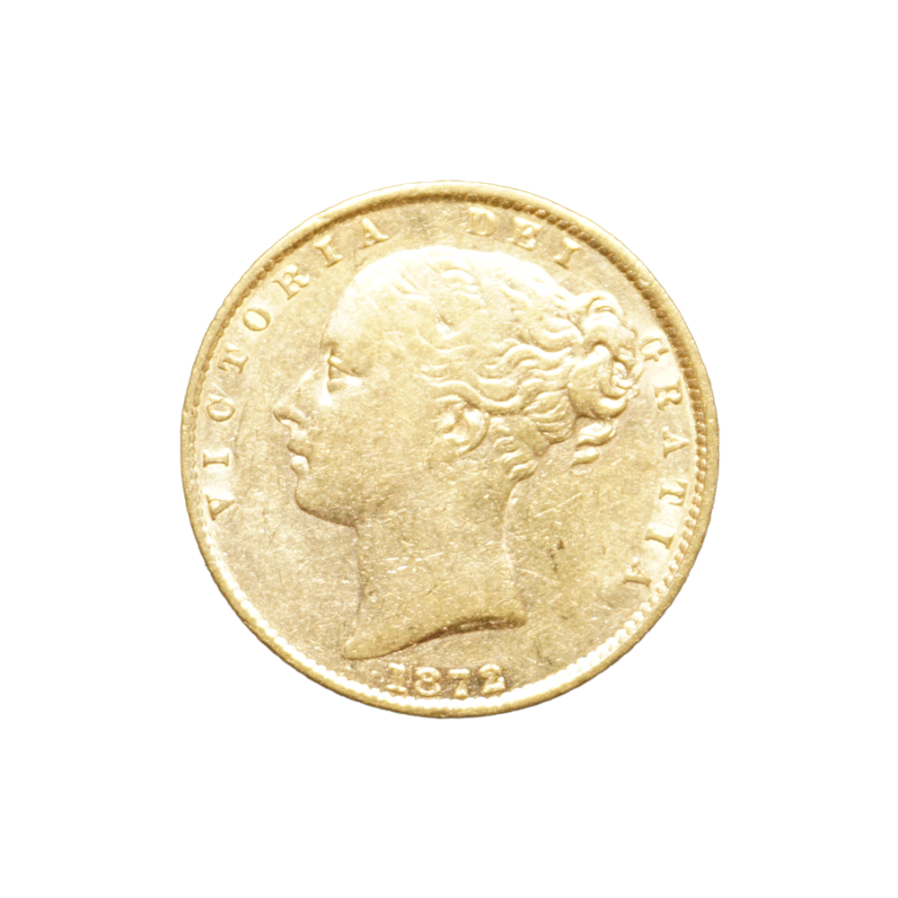 Moeda de ouro original do Reino Unido datada do ano de 1872.