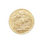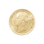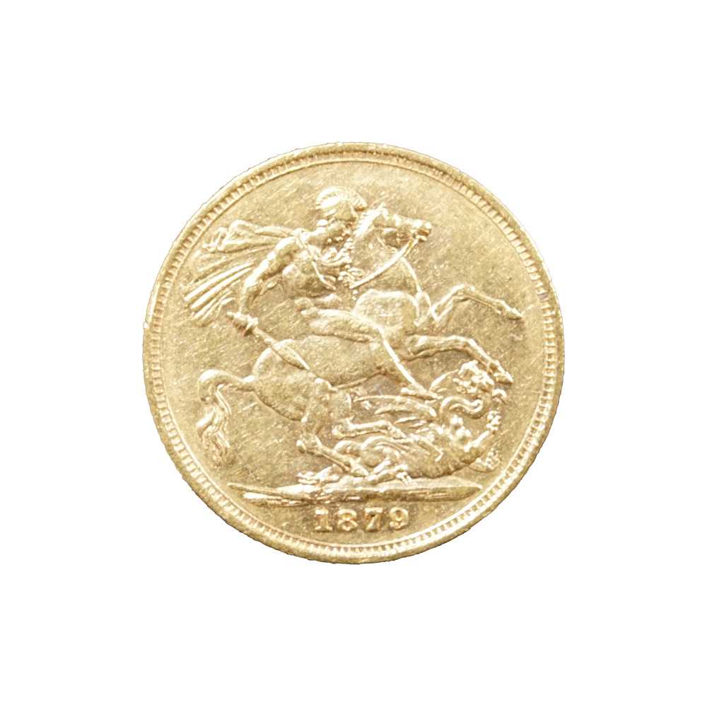 Moeda de ouro original do Reino Unido datada do ano de 1879.