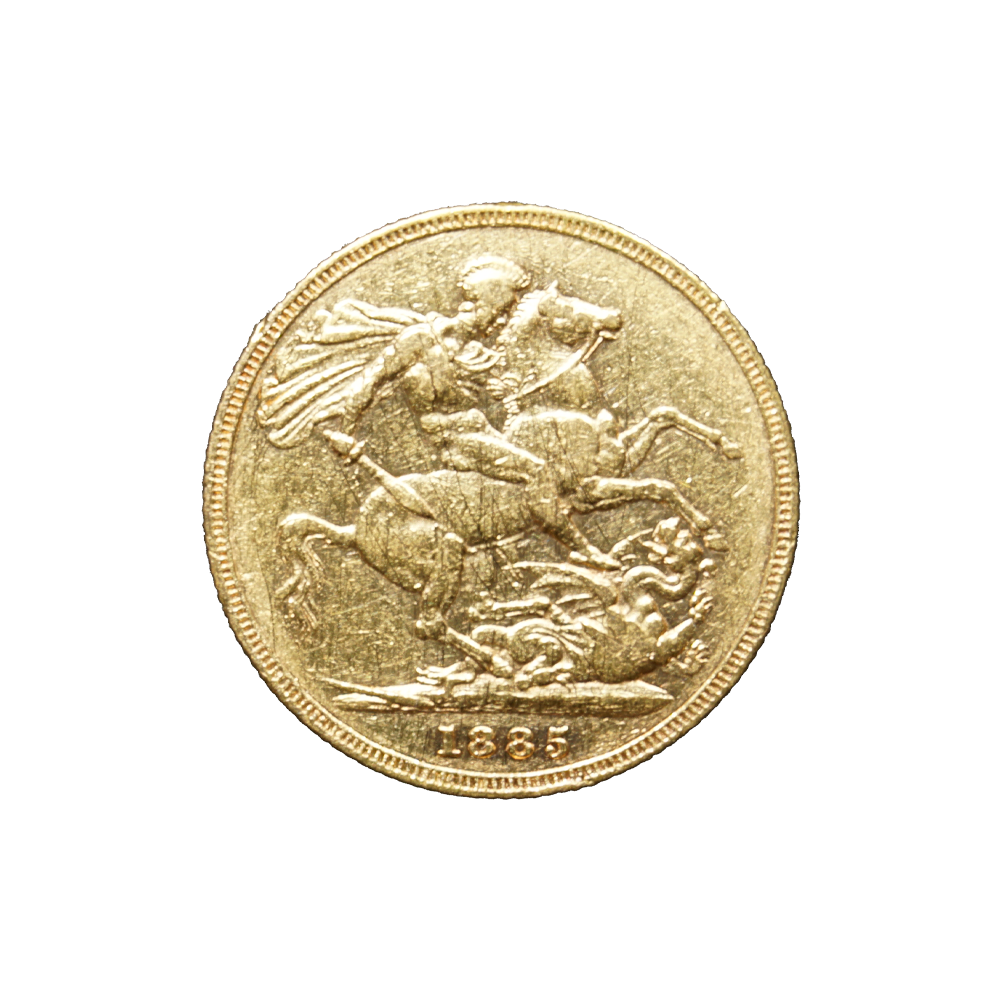 Moeda de ouro original do Reino Unido datada do ano de 1885.