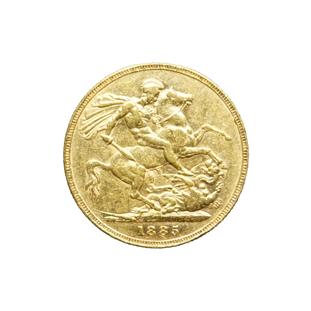 Moeda de ouro original do Reino Unido datada do ano de 1885.
