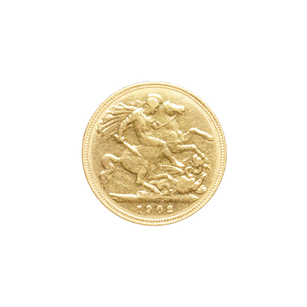 Moeda de ouro original do Reino Unido datada do ano de 1902.